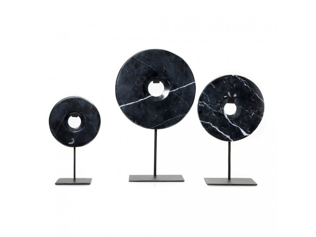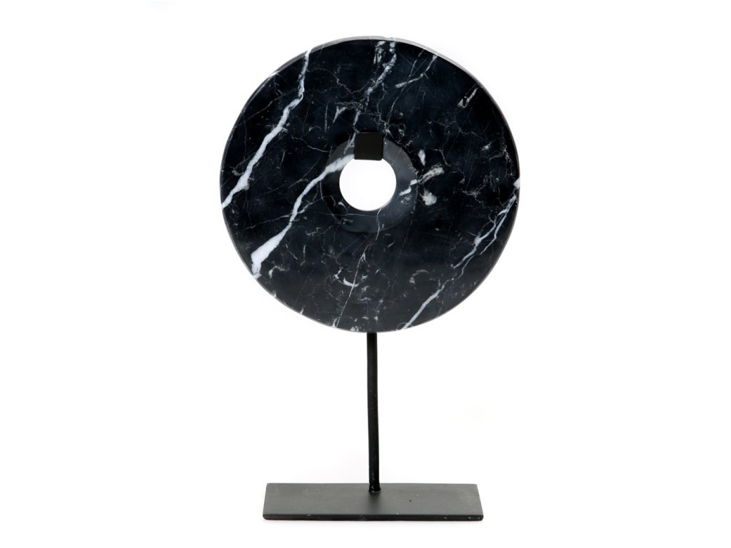 BAZAR BIZAR The Marble Disc on Stand - Black - L stojacia dekorácia