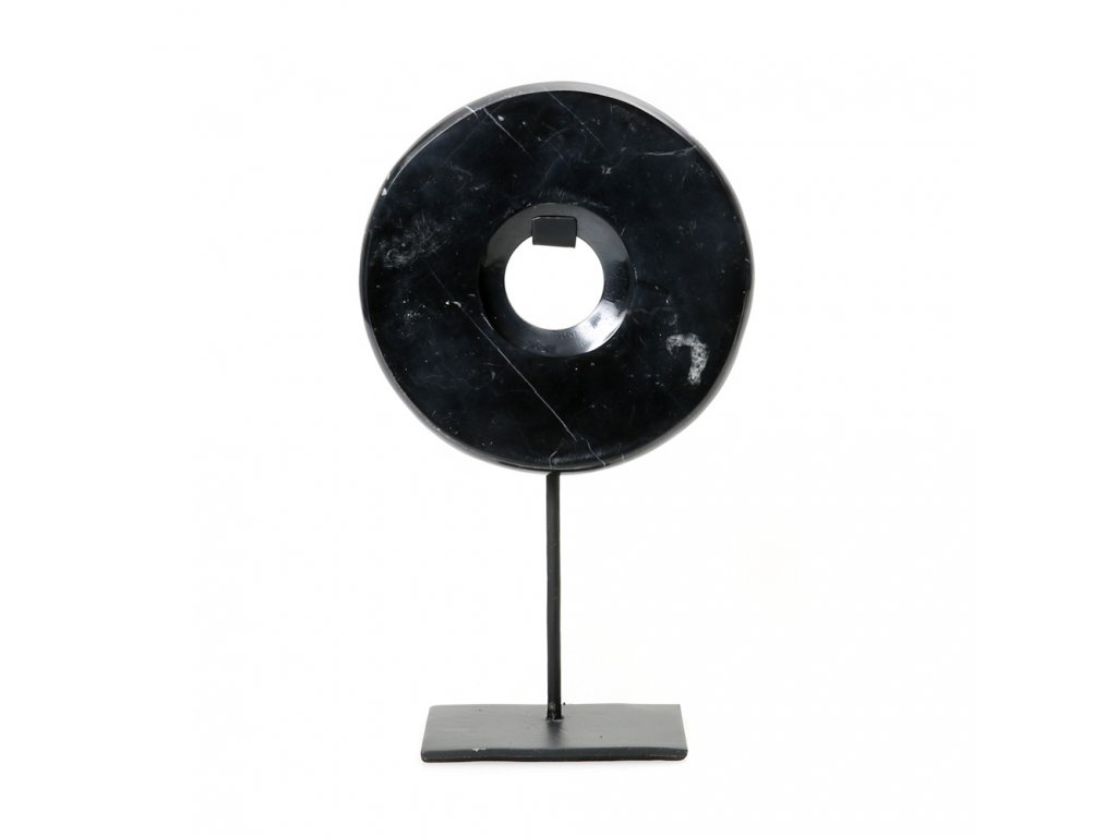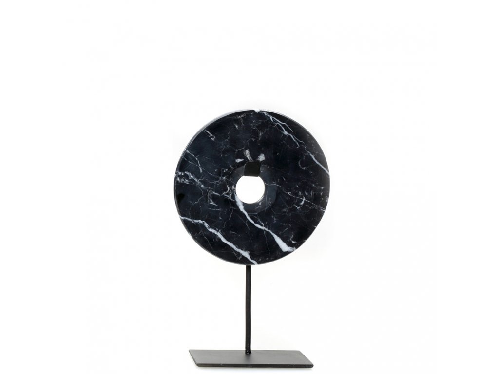 BAZAR BIZAR The Marble Disc on Stand - Black - M stojacia dekorácia