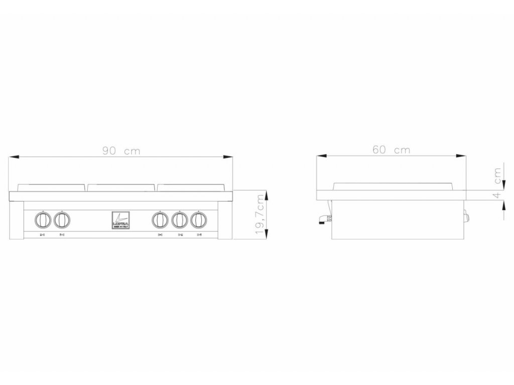 LOFRA Professional plynová varná doska TAS96-C vo farebnom vyhotovení nerez je štýlový spotrebič v nezameniteľnom Talianskom dizajne, ideálny pre kombinovanie s ostatnými spotrebičmi radyProfessional.