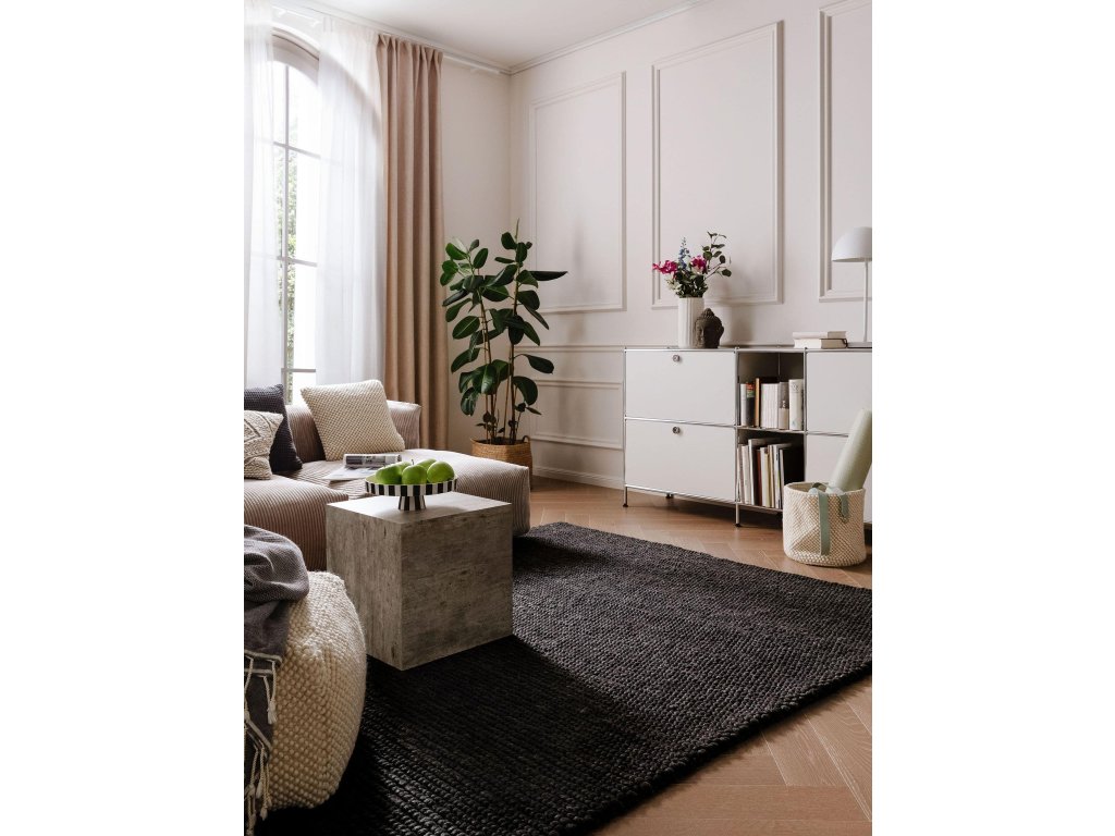 Koberec MOOD SELECTION Beads Charcoal patrí medzi ručne vyrábané produkty. Je vyrobený z materiálu 70% Vlna 30% Polyester. Rozmer koberca je 120 x 170 cm.