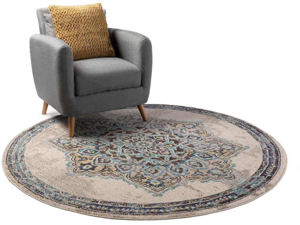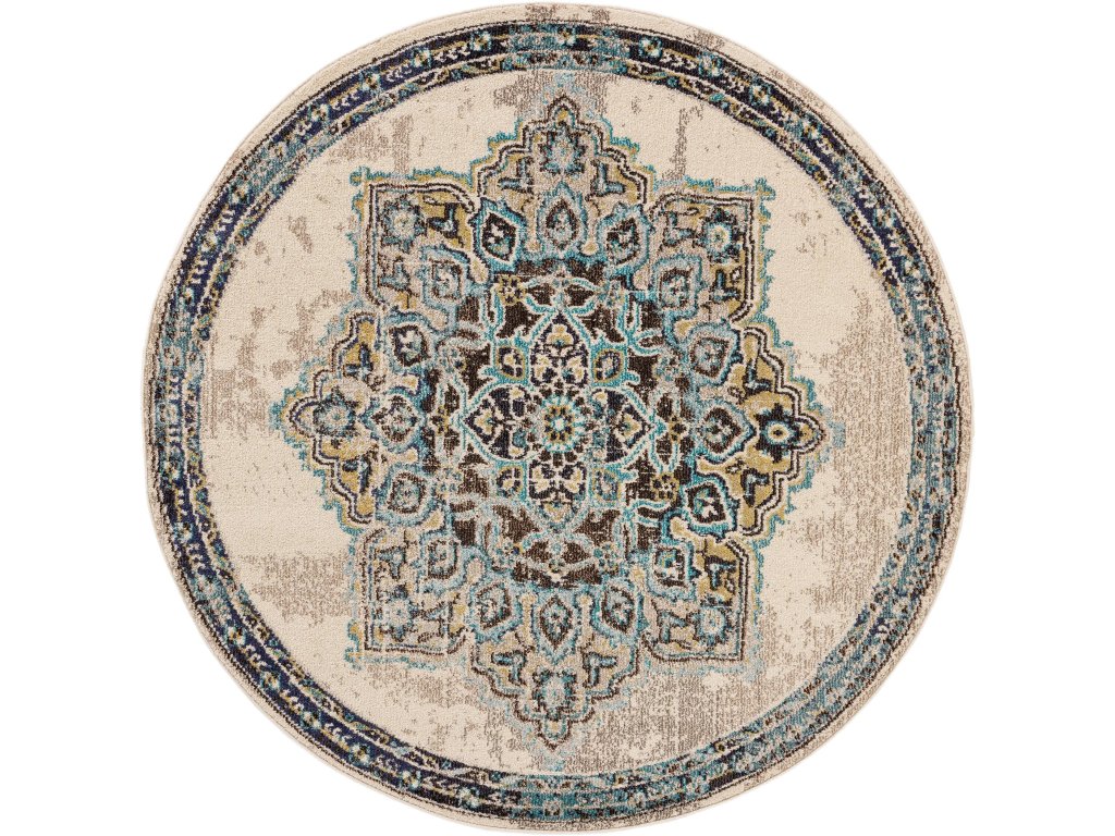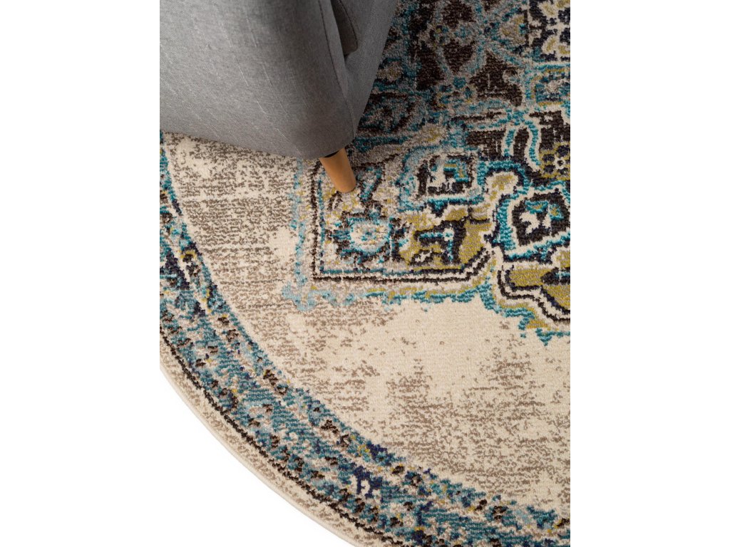 Koberec MOOD SELECTION Casa Beige/Turquoise patrí medzi strojovo vyrábané produkty. Je vyrobený z materiálu 100% Polypropylén. Rozmer koberca je ø180 cm.