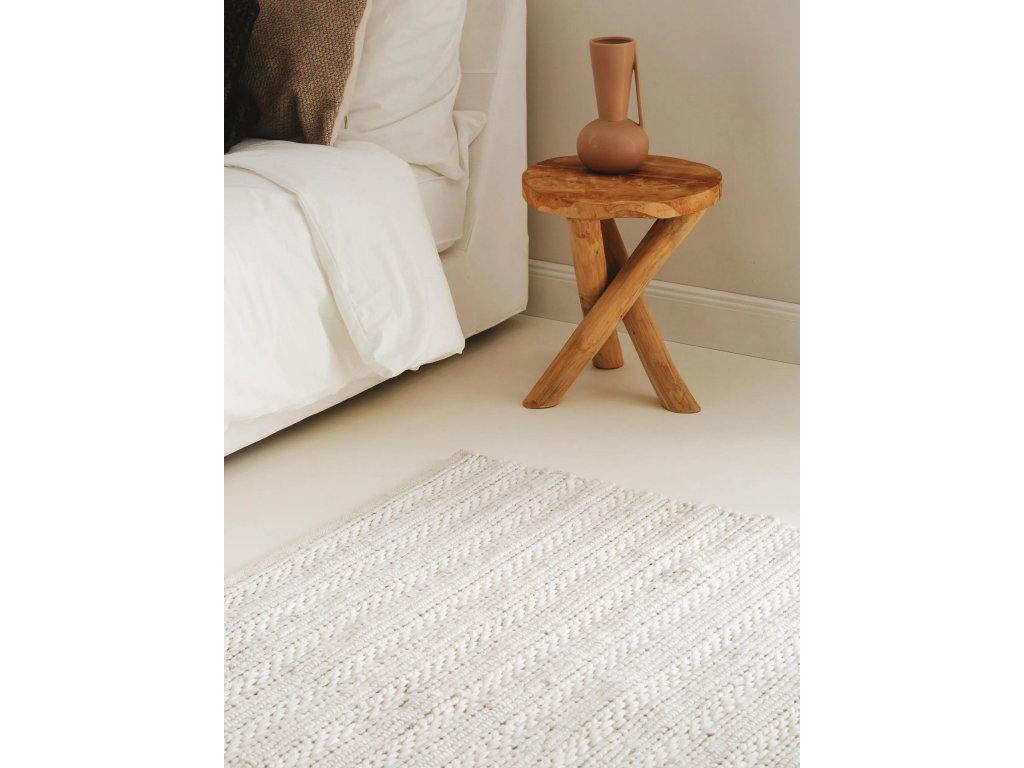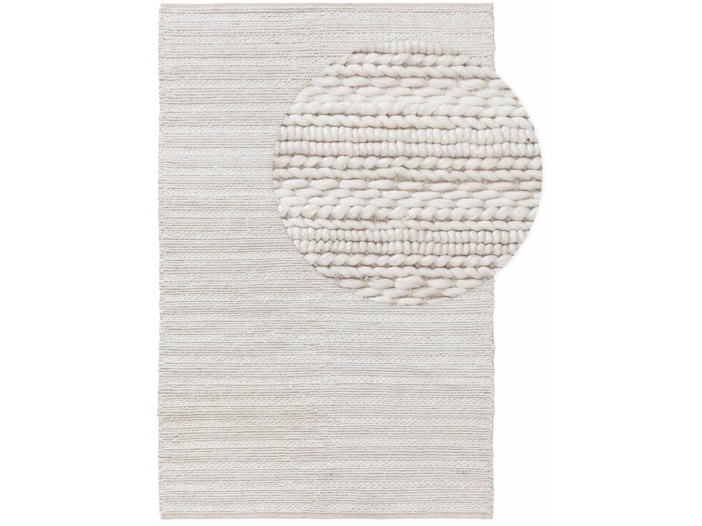 Koberec MOOD SELECTION Dina Cream patrí medzi ručne vyrábané produkty. Je vyrobený z materiálu 70% Vlna 30% Polyester. Rozmer koberca je 120 x 170 cm.