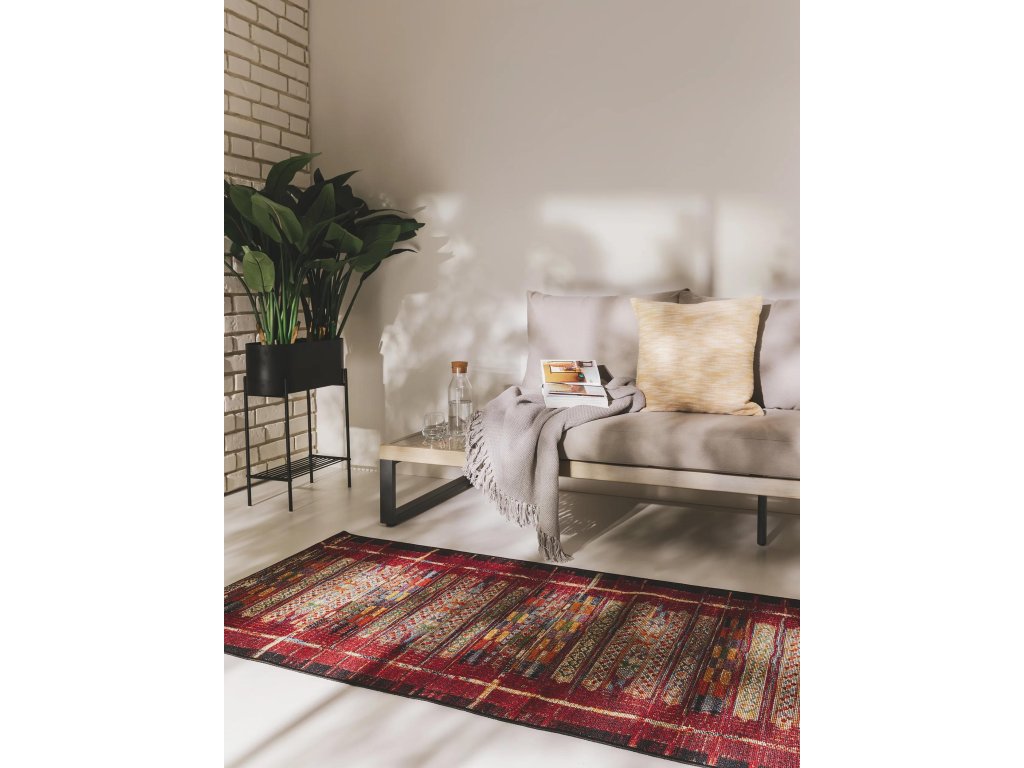 Koberec MOOD SELECTION Exteriérový koberec Artis Multicolour/Red patrí medzi strojovo vyrábané produkty. Je vyrobený z materiálu 76% Polypropylén 23% Polyester 1% Latex. Rozmer koberca je 80 x 250 cm. Koberec je určený pre použitie x exteriéri aj v interiéri.