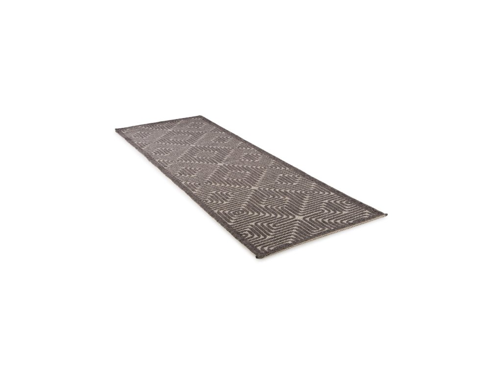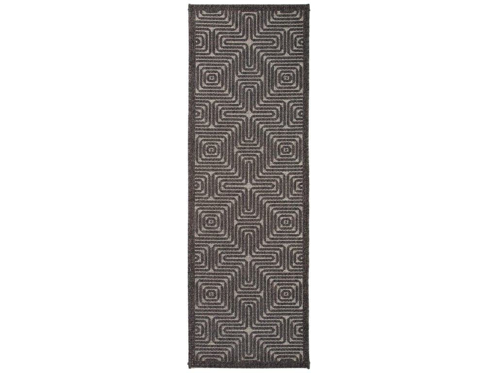 MOOD SELECTION Exteriérový koberec Canvas Black je koberec v rozmere 75 x 220 cm vyrobený z materiálu 90% polypropylén 10% Polyester s výškou vlasu 1- 5 mm. Patrí medzi strojovo vyrábané produkty s trendovým dizajnom a výborným pomerom cena a výkon.