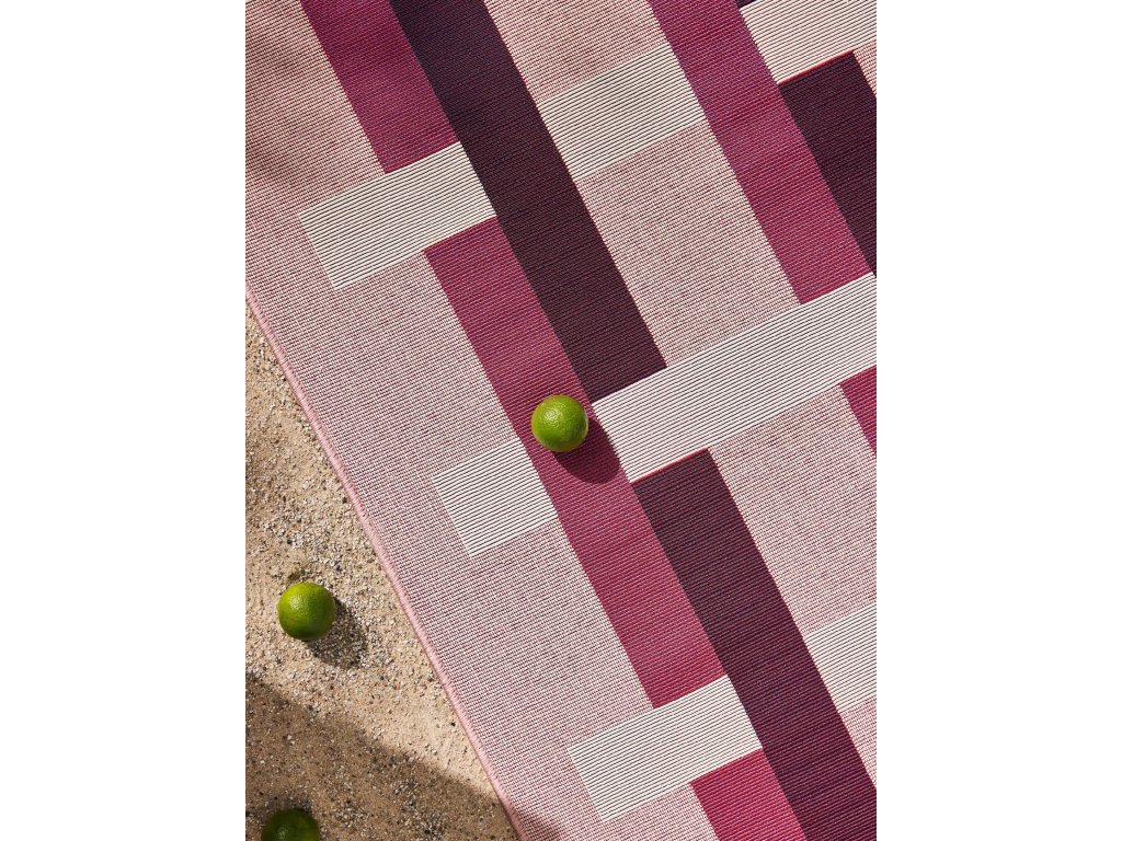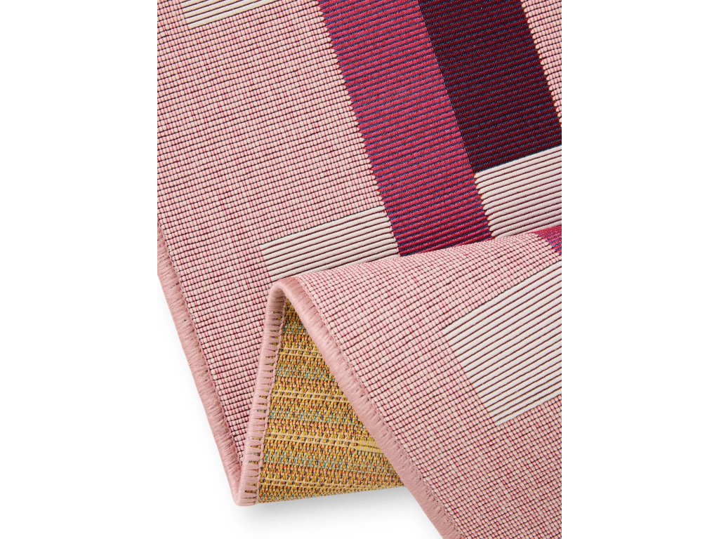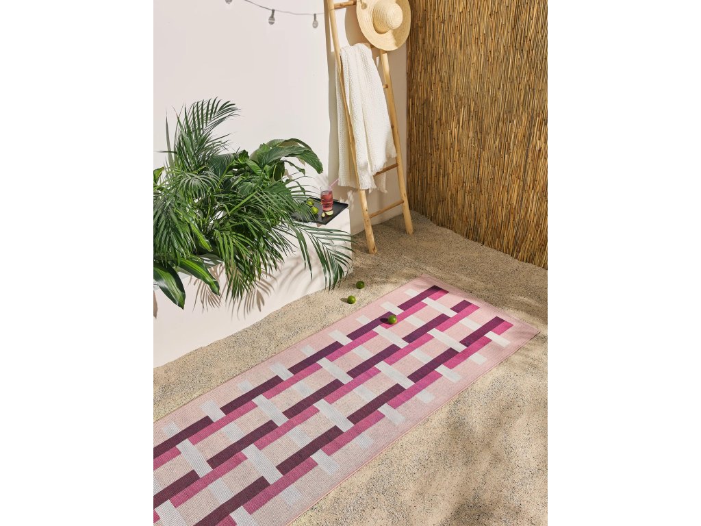 MOOD SELECTION Jovis Pink - exterirérový behúň je vyrobený z materiálu polypropylén. Tento produkt prináša okrem neopozeraného dizajnu aj skvelý pomer ceny a kvality a úžitkových vlastností. Jednoduché čistenie vodou predurčuje tento koberec pre použitie tak v exteriéroch ako aj v namáhaných interiéroch.
