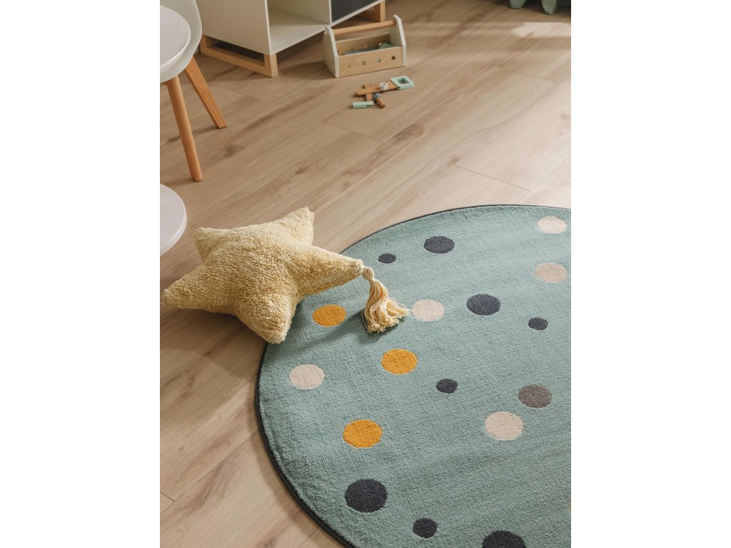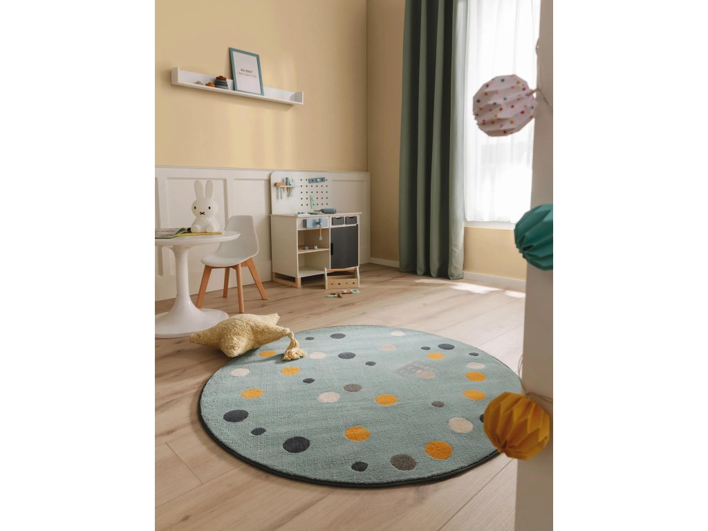 Koberec MOOD SELECTION Juno Multicolour/Blue patrí medzi strojovo vyrábané produkty. Je vyrobený z materiálu 100% Polypropylén. Rozmer koberca je ø120 cm.