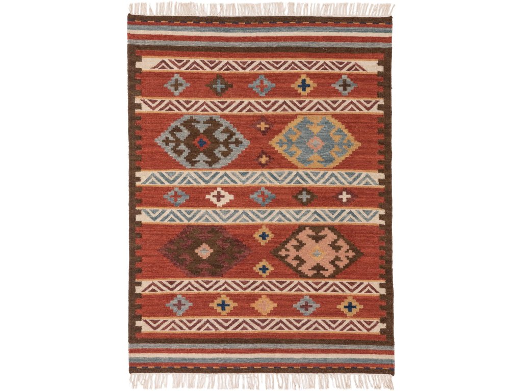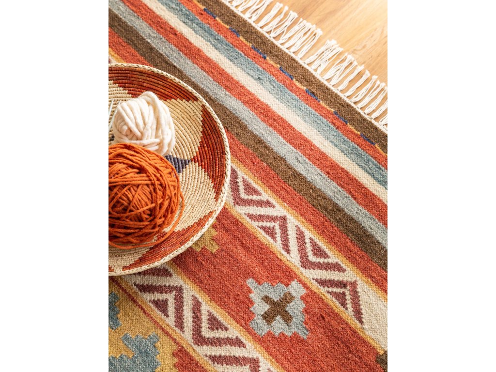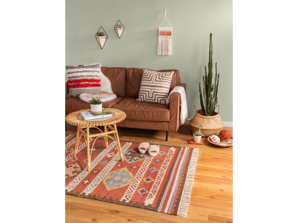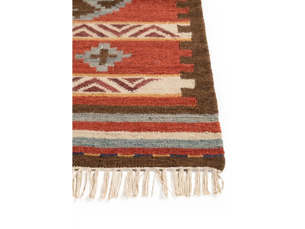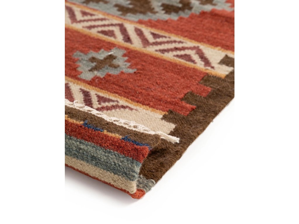 Koberec MOOD SELECTION Kelim Zohra Multicolour/Red patrí medzi ručne vyrábané produkty. Je vyrobený z materiálu 90% Vlna 10% Bavlna. Rozmer koberca je 120 x 170 cm.