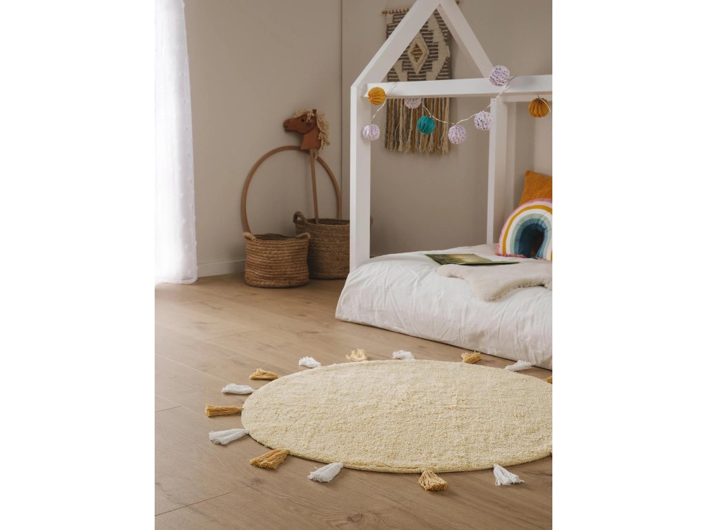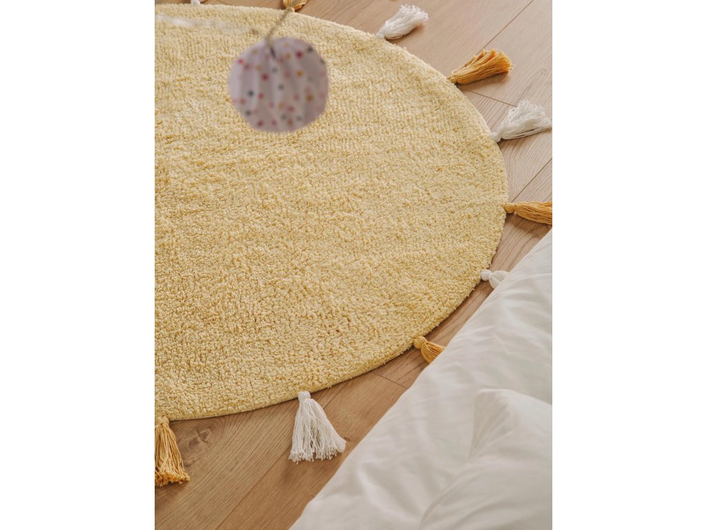 MOOD SELECTION Malu Yellow je koberec v rozmere ø 100 cm vyrobený z materiálu 100% Bavlna s výškou vlasu 6 - 10 mm. Patrí medzi ručne vyrábané produkty s trendovým dizajnom a výborným pomerom cena a výkon.