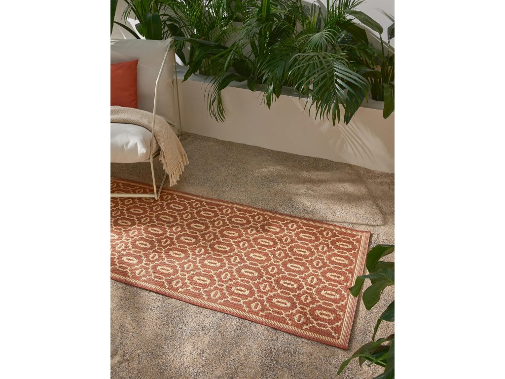 MOOD SELECTION Metro Beige/Red - exterirérový behúň je vyrobený z materiálu polypropylén. Tento produkt prináša okrem neopozeraného dizajnu aj skvelý pomer ceny a kvality a úžitkových vlastností. Jednoduché čistenie vodou predurčuje tento koberec pre použitie tak v exteriéroch ako aj v namáhaných interiéroch.