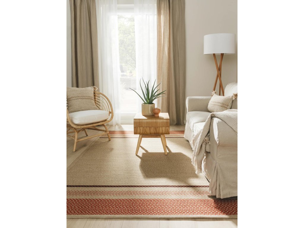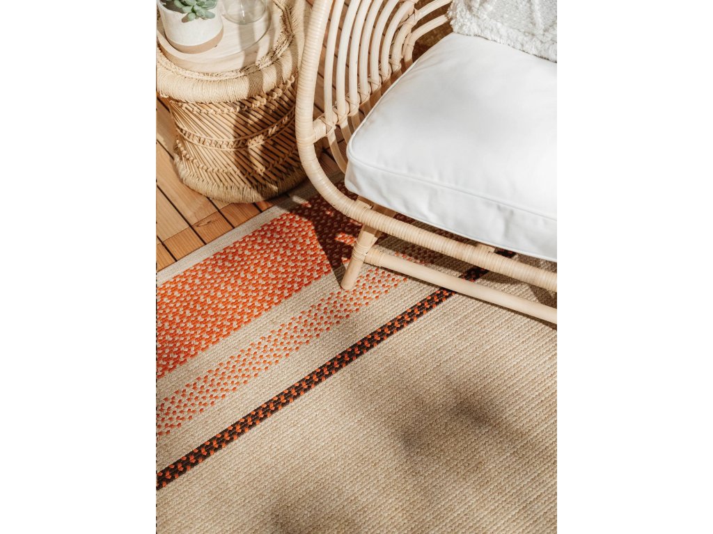 MOOD SELECTION Nandi Terracotta - exteriérový koberec je vyrobený z materiálu polypropylén. Tento produkt prináša okrem neopozeraného dizajnu aj skvelý pomer ceny a kvality a úžitkových vlastností. Jednoduché čistenie vodou predurčuje tento koberec pre použitie tak v exteriéroch ako aj v namáhaných interiéroch.