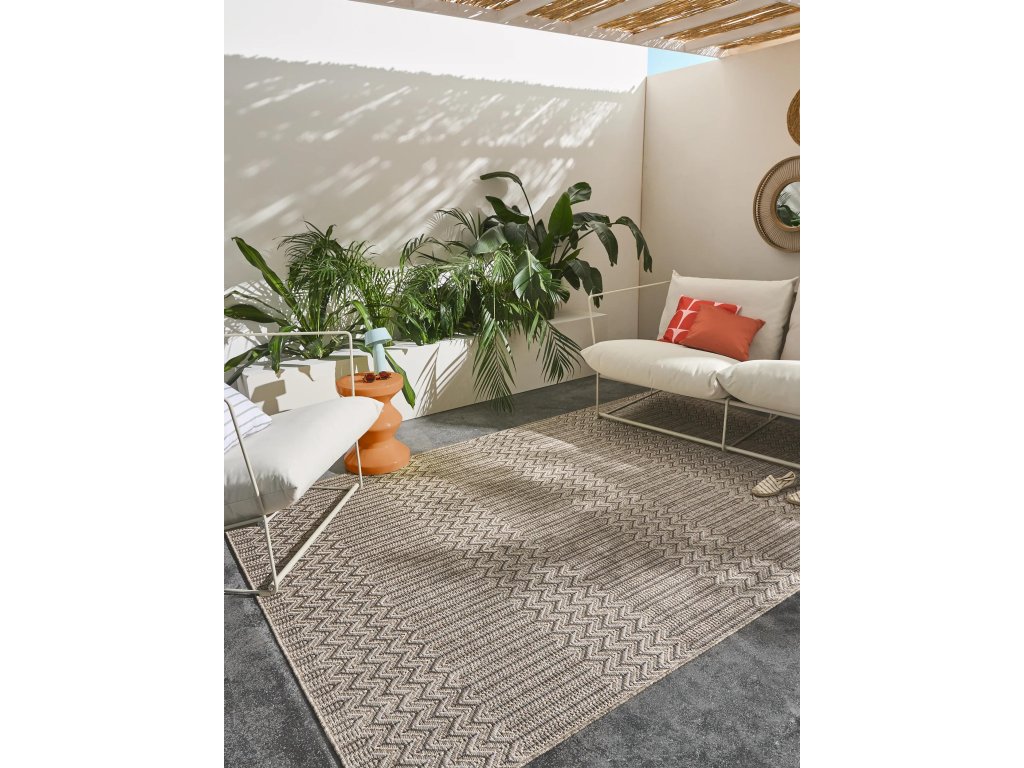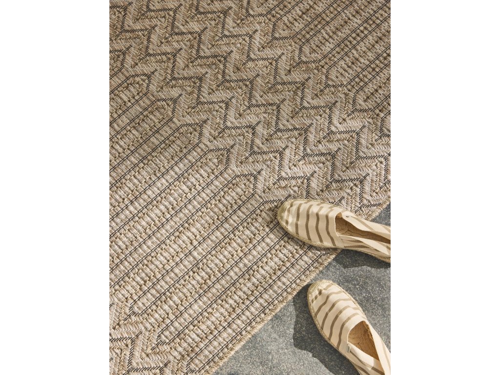 MOOD SELECTION Naoto Beige - exteriérový koberec je vyrobený z materiálu polypropylén. Tento produkt prináša okrem neopozeraného dizajnu aj skvelý pomer ceny a kvality a úžitkových vlastností. Jednoduché čistenie vodou predurčuje tento koberec pre použitie tak v exteriéroch ako aj v namáhaných interiéroch.