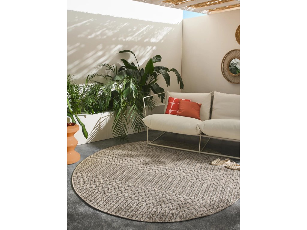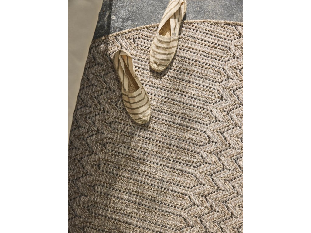 MOOD SELECTION Naoto Beige - exteriérový koberec je vyrobený z materiálu polypropylén. Tento produkt prináša okrem neopozeraného dizajnu aj skvelý pomer ceny a kvality a úžitkových vlastností. Jednoduché čistenie vodou predurčuje tento koberec pre použitie tak v exteriéroch ako aj v namáhaných interiéroch.