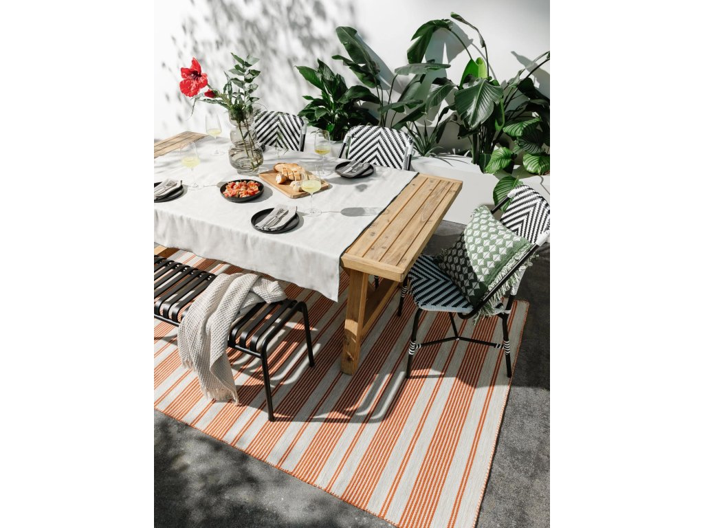 MOOD SELECTION Rida Beige/Orange - exteriérový koberec je vyrobený z materiálu polyester. Tento produkt prináša okrem neopozeraného dizajnu aj skvelý pomer ceny a kvality a úžitkových vlastností. Jednoduché čistenie vodou predurčuje tento koberec pre použitie tak v exteriéroch ako aj v namáhaných interiéroch.