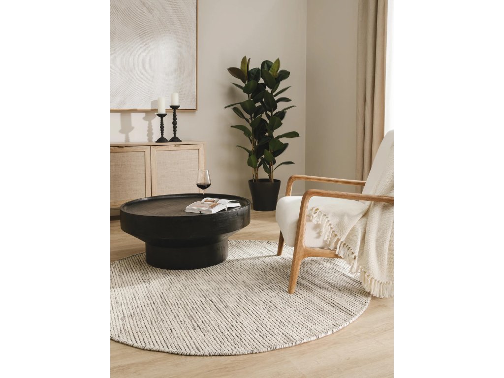 Koberec MOOD SELECTION Rocco Beige/Black patrí medzi ručne vyrábané produkty. Je vyrobený z materiálu 100% Vlna. Rozmer koberca je ø100 cm.