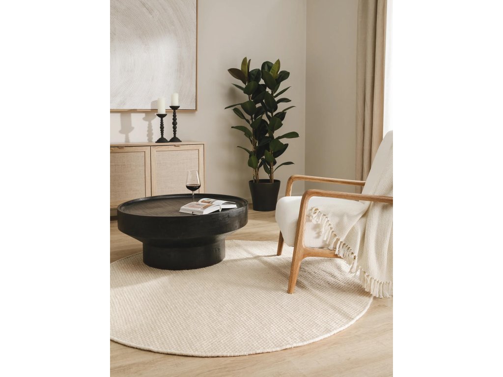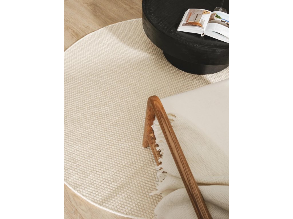 Koberec MOOD SELECTION Rocco White patrí medzi ručne vyrábané produkty. Je vyrobený z materiálu 100% Vlna. Rozmer koberca je ø100 cm.