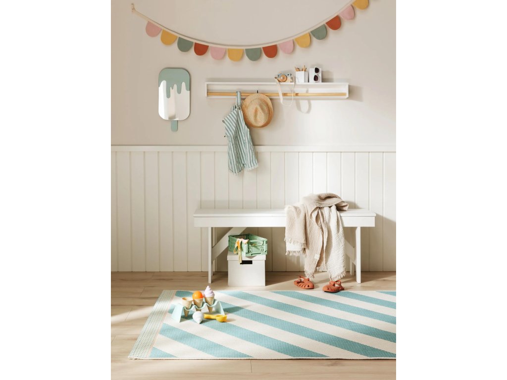 MOOD SELECTION Sunny Blue - exteriérový koberec je vyrobený z materiálu polypropylén. Tento produkt prináša okrem neopozeraného dizajnu aj skvelý pomer ceny a kvality a úžitkových vlastností. Jednoduché čistenie vodou predurčuje tento koberec pre použitie tak v exteriéroch ako aj v namáhaných interiéroch.