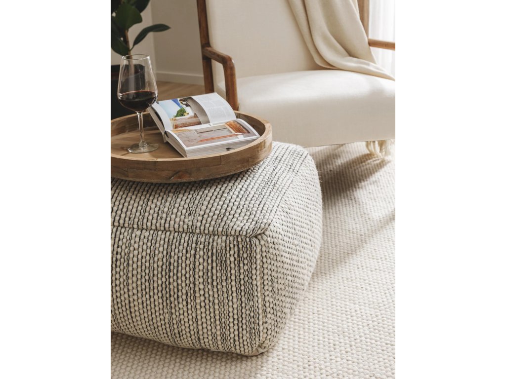 MOOD SELECTION Taburetka Rocco Beige/Black je taburetka z materiálu 100% Vlna vo farebnom vyhotovení béžová/čierna s rozmerom 55 x 55 x 30 cm.