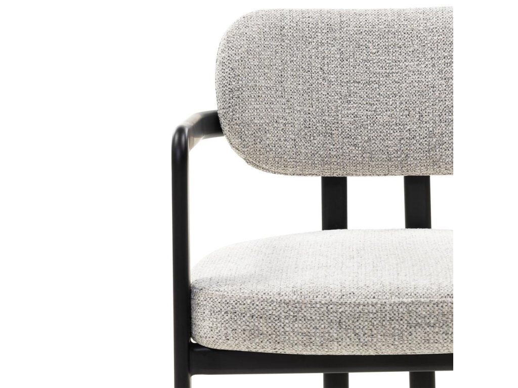 Stolička FLAIRE zaujme minimalistickým tvarom a zmyslom pre detail. Elegantné šedo-béžové čalúnenie vytvára harmonický kontrast s čiernym kovovým rámom a dodáva mu pevnosť a charakter.