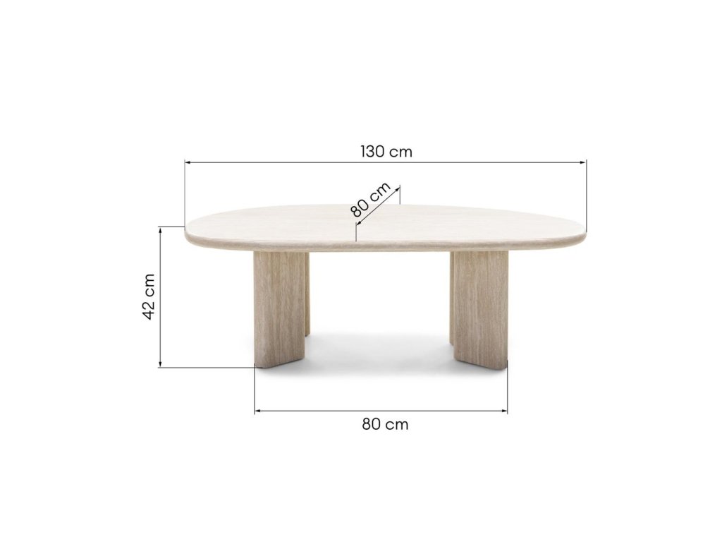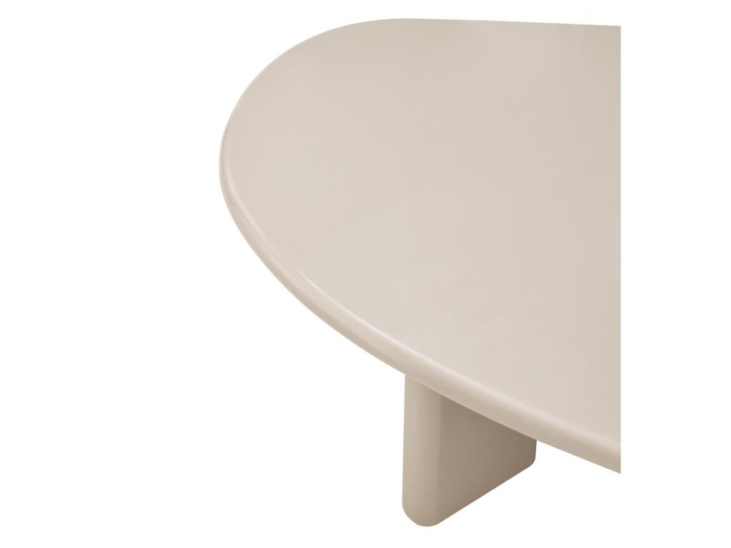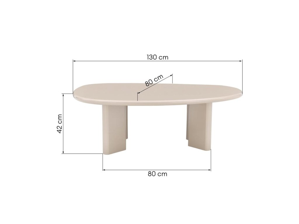 Konferenčný stolík NADIN zaujme organickým, nepravidelným tvarom, ktorý mu dodáva avantgardný, moderný charakter. Je vyrobený z odolného MDF a zaisťuje pevnosť a stabilitu, zatiaľ čo jeho všestranná nahá povrchová úprava s jemným svetloružovým leskom zvýrazňuje prirodzenú eleganciu. Jeho jedinečná forma okamžite upúta pozornosť a stáva sa výrazným dizajnovým prvkom v každom interiéri. Je to vynikajúca voľba pre tých, ktorí hľadajú harmóniu medzi estetikou a funkčnosťou. NADIN vytvára priestor ako na servírovanie kávy, tak aj na umelecké vystavenie dekoratívnych predmetov. Vysoko lesklá povrchová úprava navyše zvýrazňuje jej charakter, odráža svetlo a prináša výraznú súhru lesku, ktorá dodáva miestnosti sviežosť a eleganciu. Pokyny na starostlivosť: Povrchy s vysokým leskom sú náchylnejšie na poškriabanie. Na ochranu stola použite tácky pod predmety na ňom umiestnené. Vlastnosti produktu: Originálny tvar stolovej dosky Vrchná časť so šírkou 130 cm Vyrobené z MDF Nahý odtieň s jemným svetloružovým leskom Povrchová úprava s vysokým leskom Rozmery: Výška: 42 cm Šírka: 130 cm Hĺbka: 80 cm