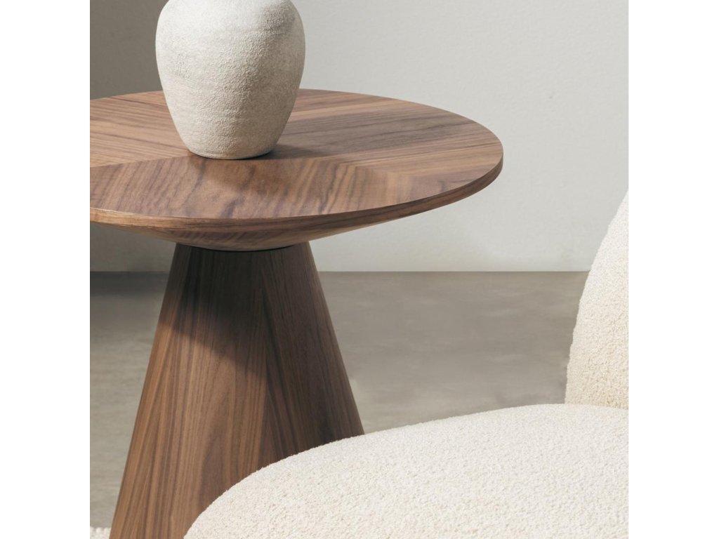Stôl OREZ kombinuje pútavý dizajn, ktorý krásne doplní vašu obývaciu izbu, s kvalitným remeselným spracovaním. Orechová dyha dodáva teplo a rafinovaný, elegantný vzhľad, zatiaľ čo okrúhly dizajn odráža najnovšie trendy. Použite ho ako príručný stolík alebo menší konferenčný stolík vedľa stolíka Lina.
