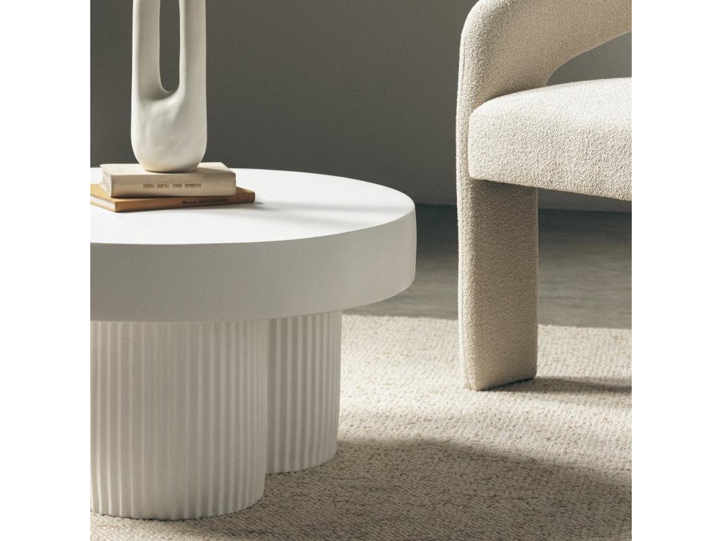 Konferenčný stolík RIGATO je nielen funkčným doplnkom vašej obývačky, ale aj skutočným vrcholom interiéru, ktorý sa vyznačuje eleganciou a robustnosťou. Jeho biela matná štruktúra mu dodáva jedinečný charakter, zatiaľ čo okrúhla stolová doska poskytuje dokonalý povrch na servírovanie nápojov a občerstvenia.