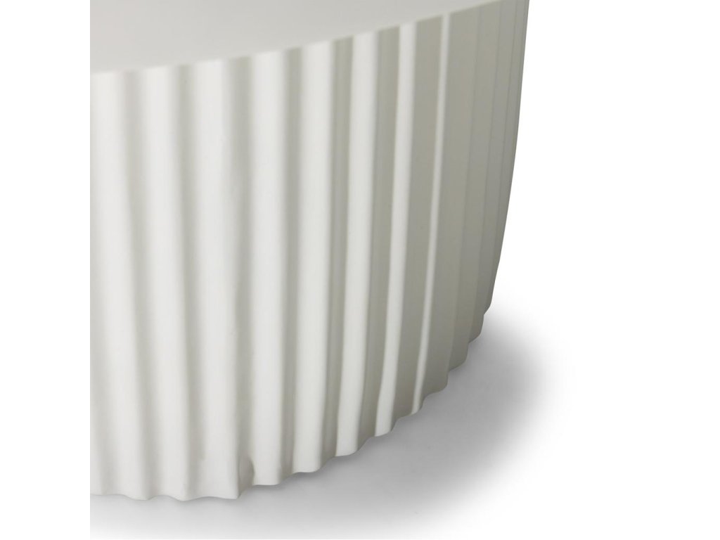 Pevný podstavec stola, vylepšený dekoratívnym drážkovaním, dodáva šarm a zároveň zaisťuje stabilitu a odolnosť. Je vyrobený výlučne z odolného sklenených vlákien a je odolný voči mechanickému poškodeniu, poškriabaniu a opotrebovaniu, vďaka čomu je dlhotrvajúcou a štýlovou voľbou do každého priestoru.
