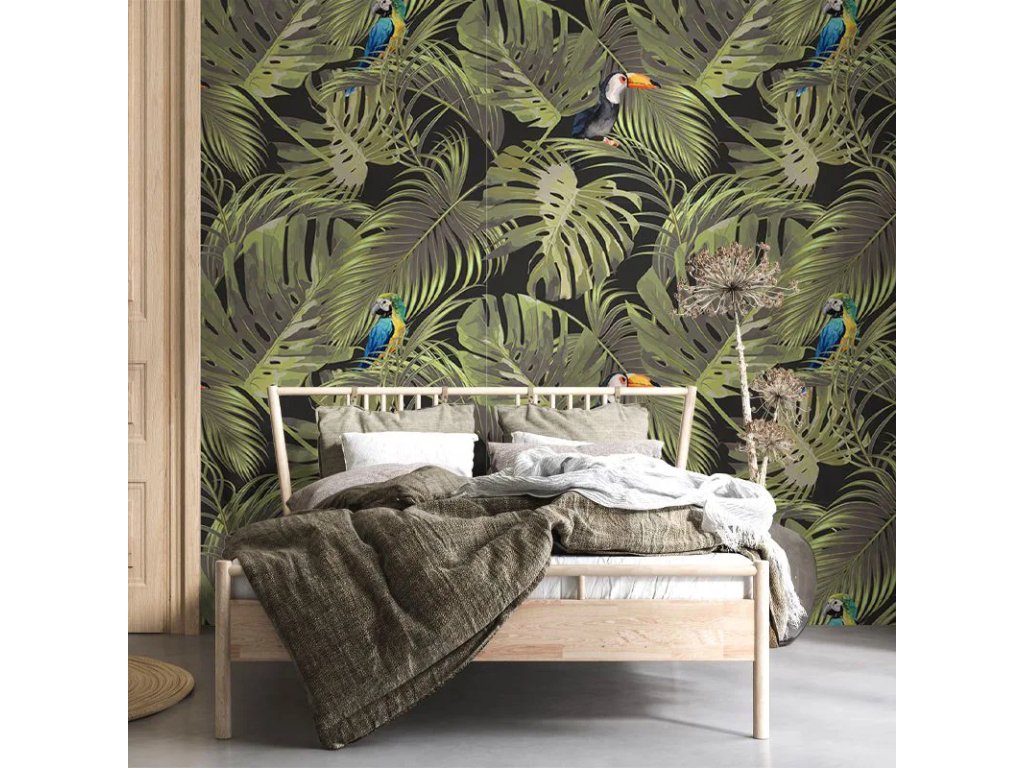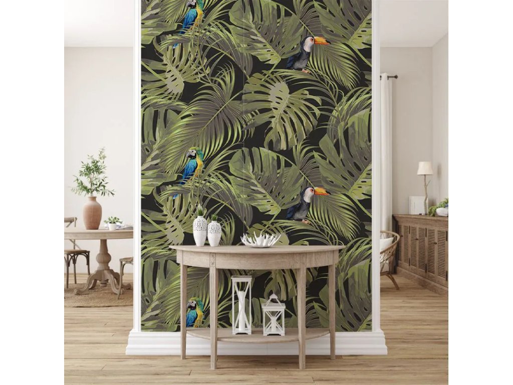 VLADILA Exotic Air - tapeta z kolekcie Tropical Vibe značky VLAdiLA v rozmere šírka - 520 cm x výška - 300 cm vyrobená z hladkého vliesu s digitálnou potlačou. Tapeta sa skladá z 10 roliek veľkosti 52 x 300 cm a v prípade záujmu je možné vyrobiť aj tapetu na mieru presne podľa veľkosti steny. Príďte si pozrieť naživo vzorky tapiet ktoré máme k dispozícii v showroome v R1 centre v Bratislave, kde vám poradíme aj s výberom a inštaláciou. V prípade záujmu si viete objednať aj malé vzorky, ktoré vám zašleme domov - kontaktujte nás e-mailom s dopytom.